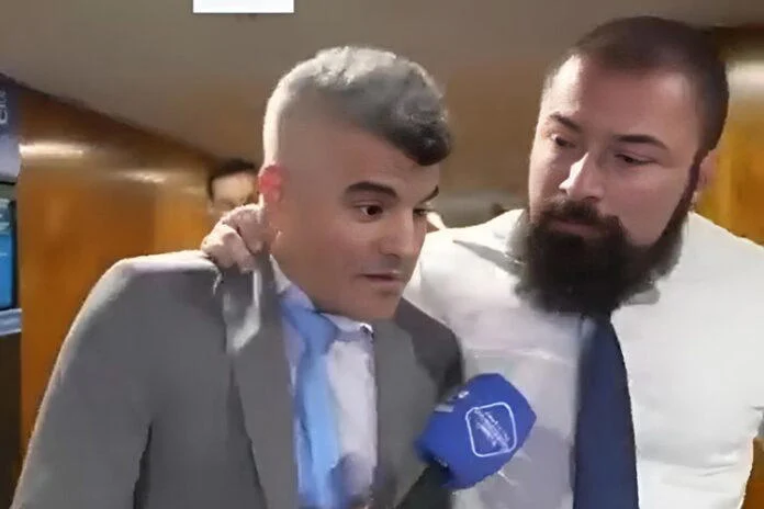 Guga e o cinegrafista Igor Borges abordavam deputados da oposição para saber qual o posicionamento sobre o tarifaço determinado por Donald Trump a produtos brasileiros e sobre a ocupação ilegal das Mesas Diretoras do Congresso. Ao entrevistar Bilynskyj enquanto caminhava a seu lado no corredor das comissões da Câmara, o jornalista foi empurrado.
