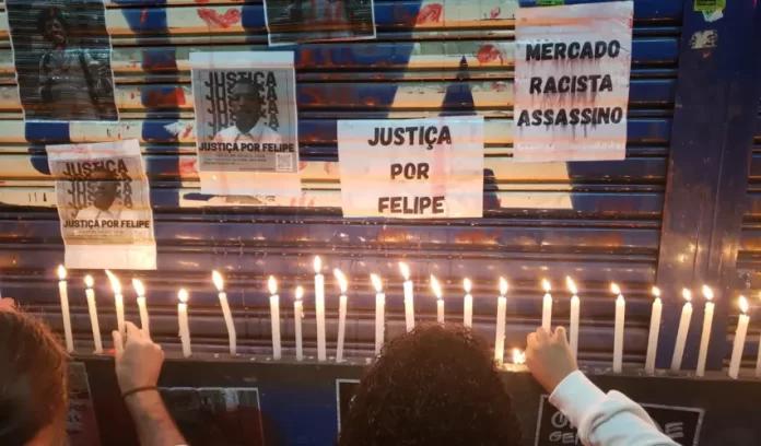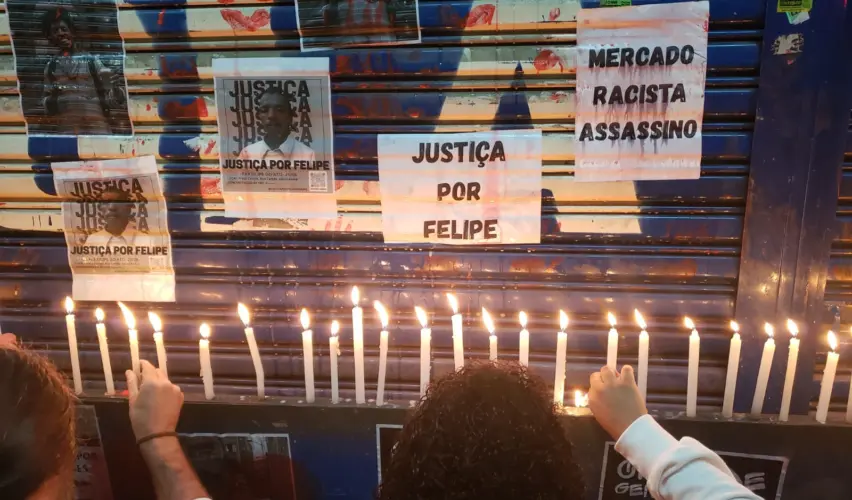 Um protesto na noite desta sexta-feira (29/8) pediu justiça por Felipe Moraes de Oliveira, artista negro de 29 anos morto na última terça (26/8) pelo segurança de um supermercado no Jardim do Estádio, bairro na periferia de Santo André, região metropolitana de São Paulo. Familiares, artistas e ativistas de movimentos negros concentraram-se na Praça Carijós, em Vila Linda, a partir das 18h e saíram em caminhada até o mercado Loyola, onde ocorreu o crime.
