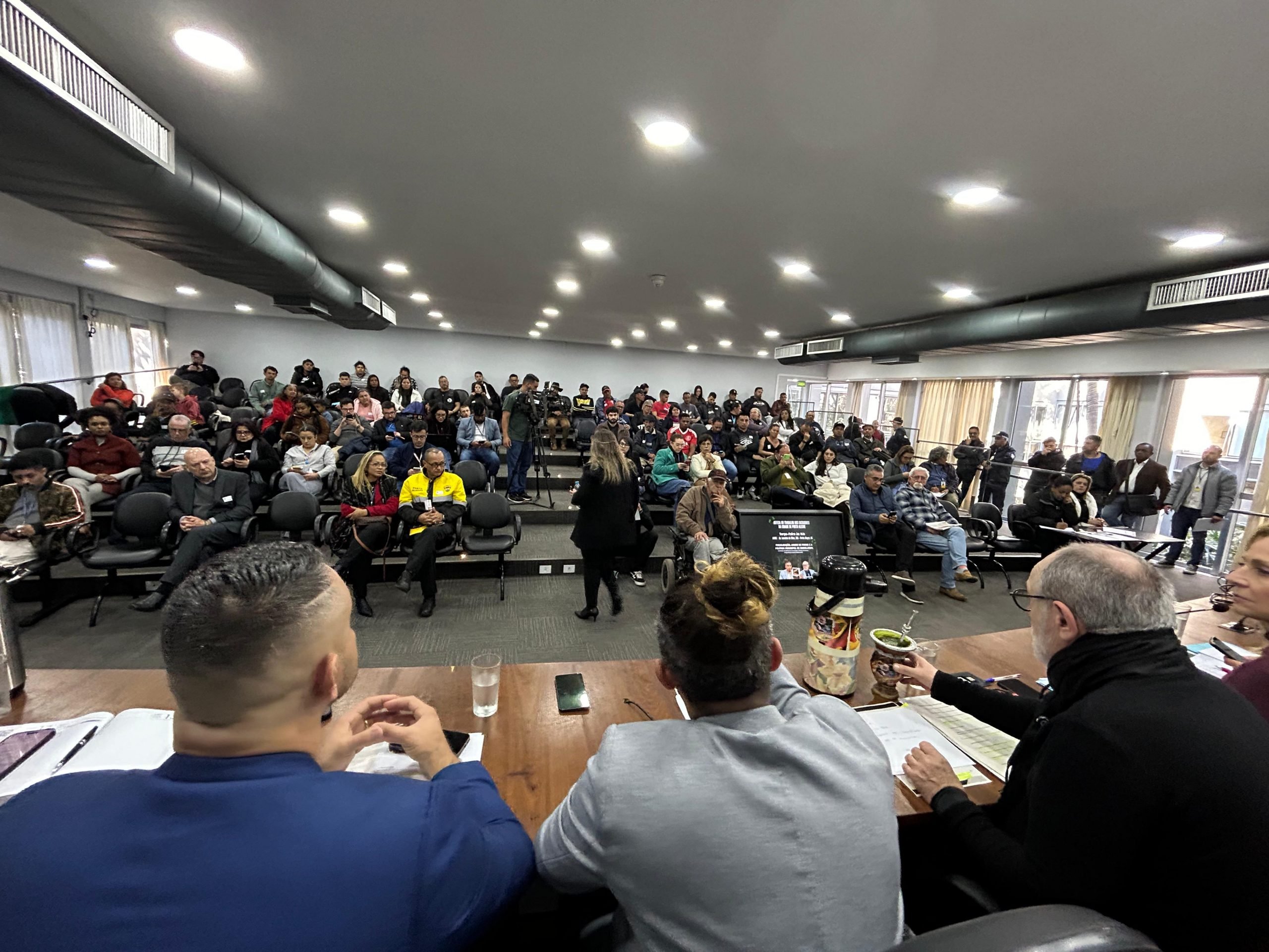 A reunião foi solicitada pelo presidente da comissão, vereador Erik Dênil (PCdoB), e pelo vice-presidente, vereador Pedro Ruas (Psol). O encontro lotou o plenário Ana Terra, onde diversas pessoas relataram casos de violência e dificuldades para manter o trabalho.