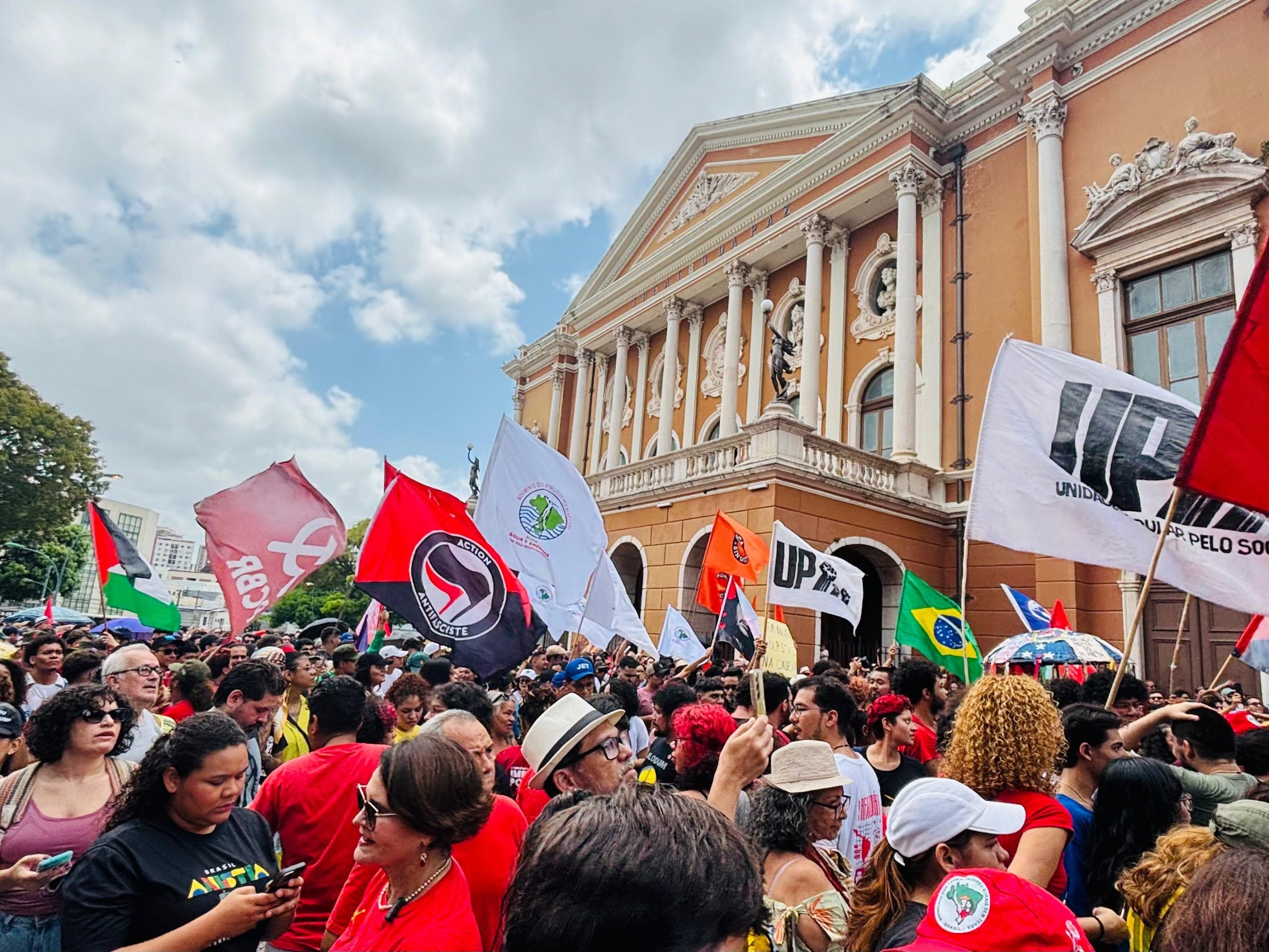 O deputado Lindbergh Farias (PT-RJ) esteve no ato e reforçou a importância da mobilização para “enterrar” os projetos que “defendem a extrema direita” no país.