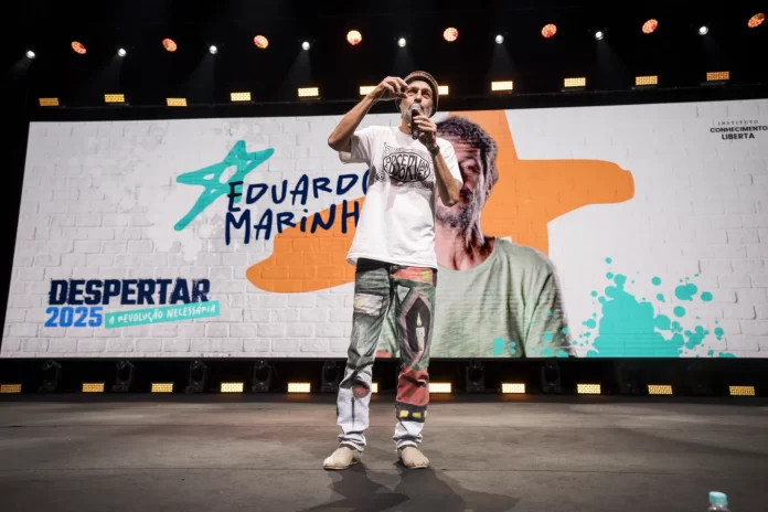 Apresentado por Fábio Pannunzio e Juliana Dal Piva, o artista e pensador Eduardo Marinho emocionou o público no Despertar 2025 ao compartilhar sua trajetória de busca pelo sentido da vida.