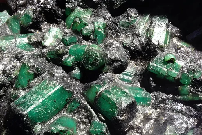 Com cerca de 90 centímetros de altura e 40 de largura, a rocha é formada por xisto e quartzo, contendo entre 45% e 50% de cristais de esmeralda natural — o que representa de 110 a 120 quilos do total.