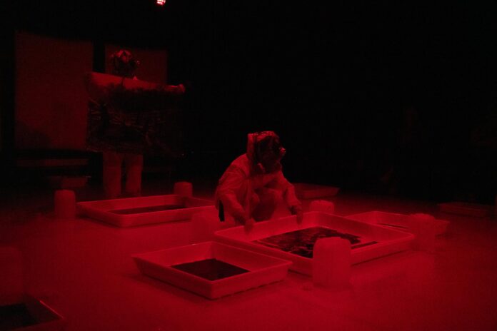 “O mercúrio esteve presente na criação da fotografia analógica através do vapor. Então, nessa peça, usamos esse mesmo elemento químico que, no Tapajós, aliado ao garimpo, faz as existências desaparecerem. Aqui, aliado ao teatro e à vida, faz as existências aparecerem”, indica.