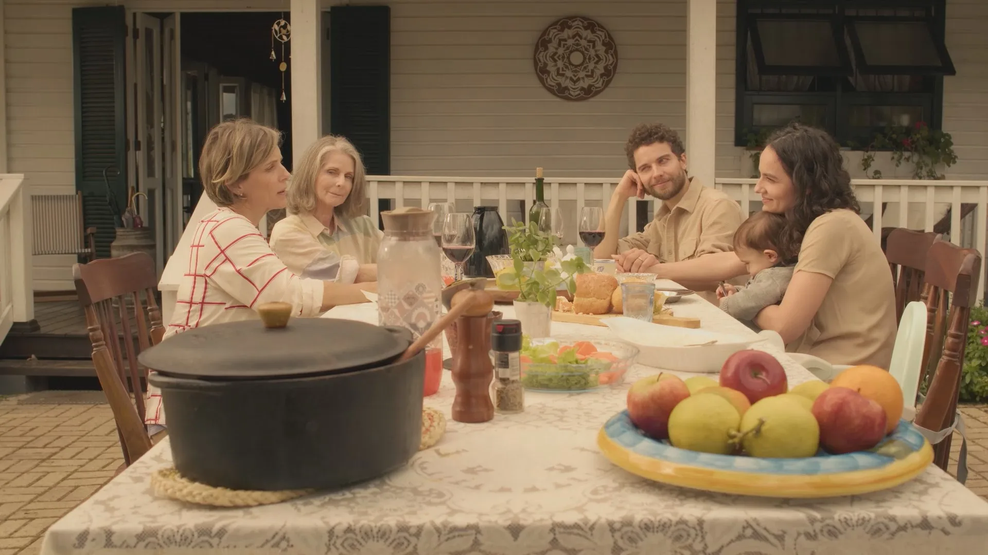 “A ideia é falar desse conceito do tempo em formato de espiral, não linear. Em encontros de família, por mais banais que pareçam, sempre tem muitas camadas, sempre tem muita história envolvida”, explica o diretor Leonardo Peixoto. “E a partir disso, conseguimos falar da cidade de Novo Hamburgo, especificamente. Na época dos anos 1980, ela era chamada de a Manchester brasileira, em razão do tanto de dinheiro que circulava graças à indústria calçadista, e isso impactou muito a cidade”, elabora.