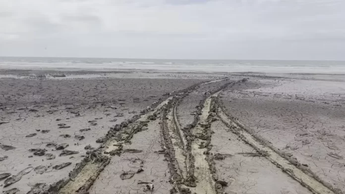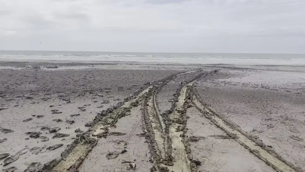 (Folhapress) – O surgimento de uma faixa de lama de cerca de 2 km no litoral de Rio Grande (RS) levou à interdição de um trecho da beira da praia do Cassino, a maior em extensão do Brasil.
