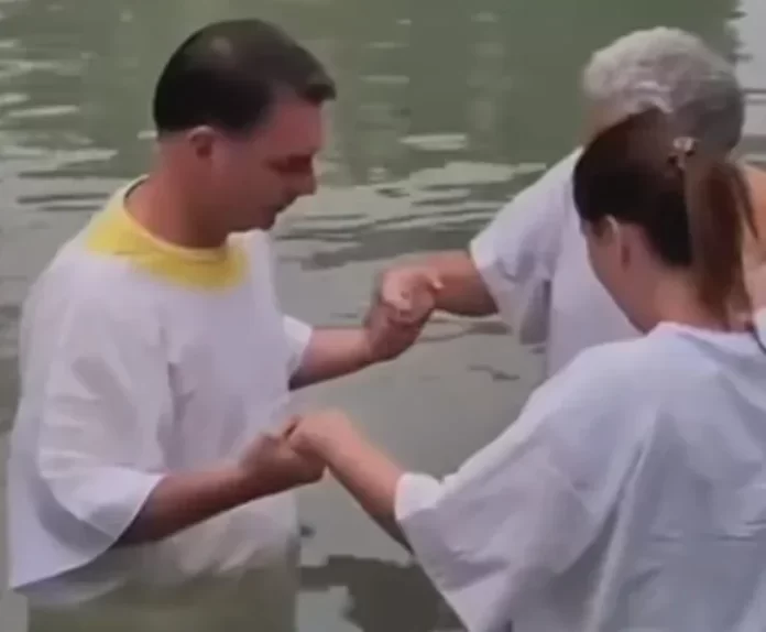 Flávio já havia se deixado batizar no Jordão em 2016, quando ele e os irmãos Eduardo e Carlos acompanharam o pai num tour por Israel liderado pelo Pastor Everaldo –que presidia o PSC, partido ao qual Bolsonaro era filiado então.