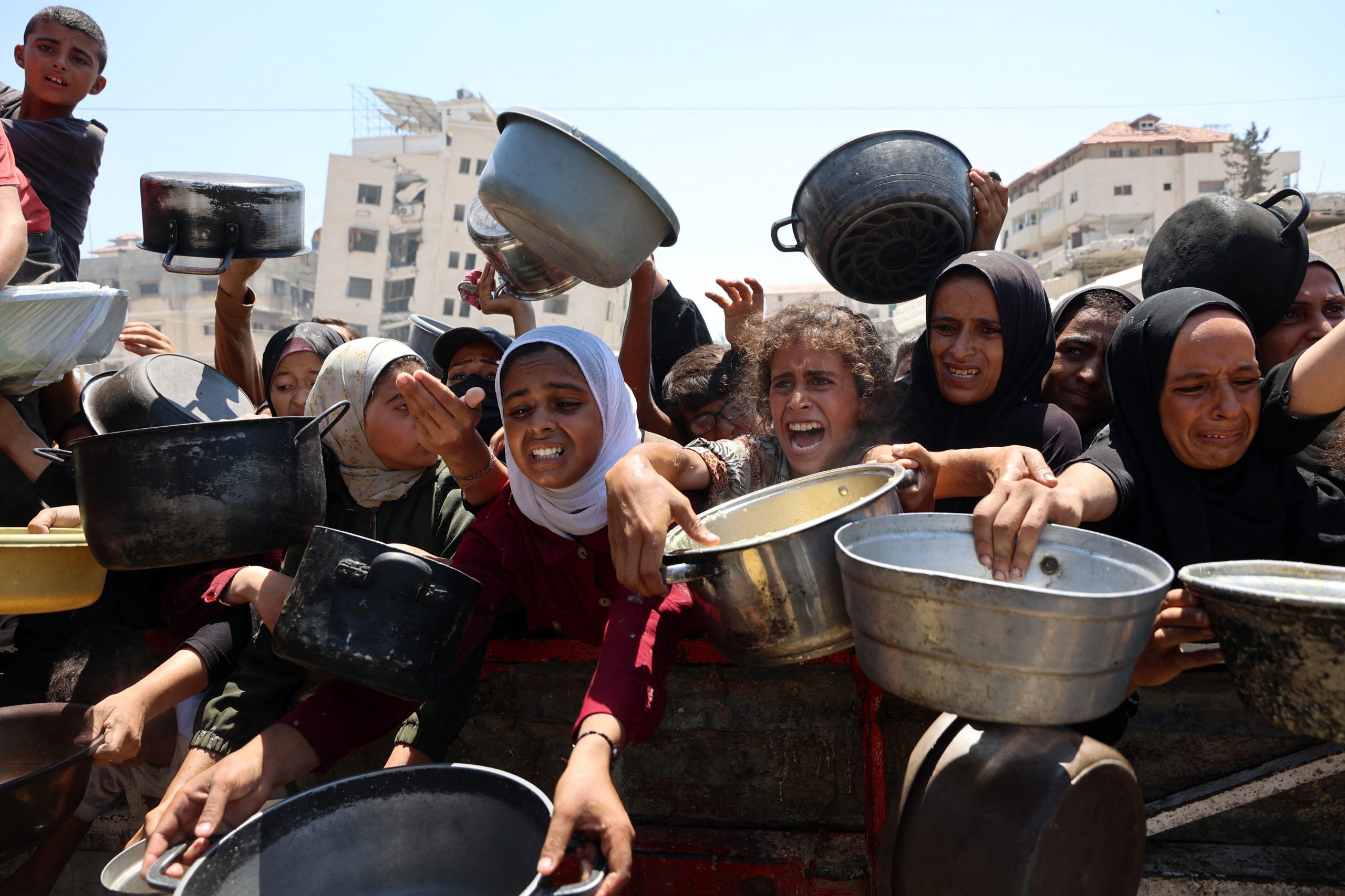 Outra palestina, Eslam al-Telbany, também deslocada pelos ataques de Israel, disse que correu atrás da ajuda que caiu do céu. “Fui e meus filhos rezaram para que eu voltasse com comida. Eles não comem nem bebem nada há dois dias. Parte meu coração que eles estejam esperando que eu os alimente”, disse se desfazendo em lágrimas.