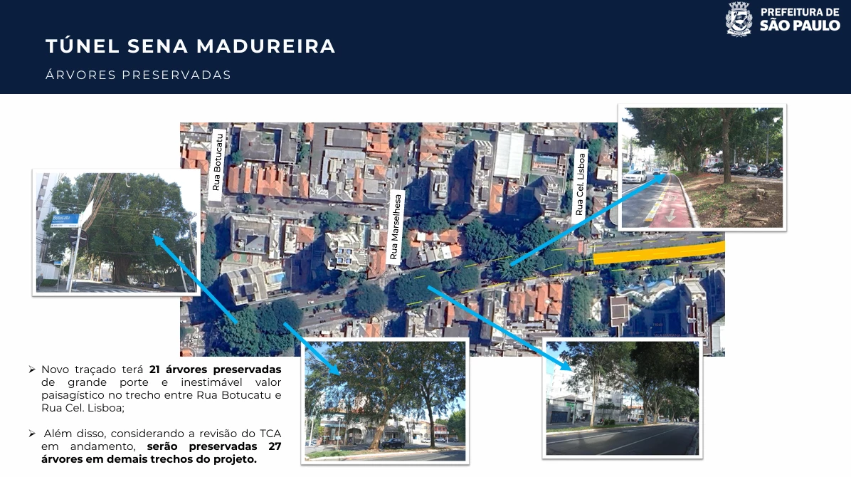 Na comparação com o projeto anterior, o novo desenho diminuiu a extensão do emboque e desemboque do túnel, o que reduziu de 170 para 97 o número de árvores a serem cortadas, além de passar a prever o transplante de 25 árvores adultas para outro local na mesma região.