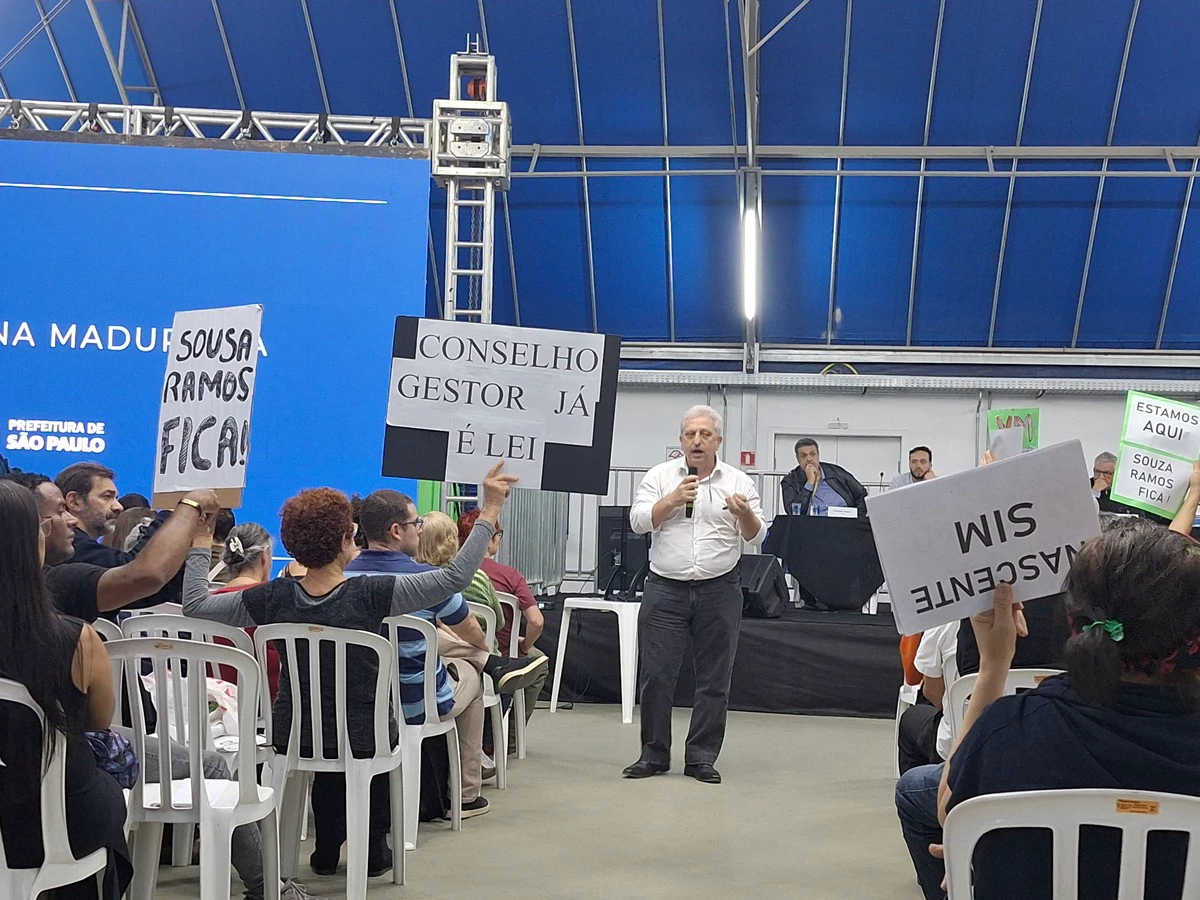 “Estamos falando de uma comunidade que está há 75 anos no mesmo lugar”, disse Eduardo Canejo, presidente da associação de moradores da comunidade Sousa Ramos, na Vila Mariana, ao iniciar sua fala diante do auditório lotado para a audiência pública sobre uma obra prioritária da gestão do prefeito de São Paulo, Ricardo Nunes (MDB).