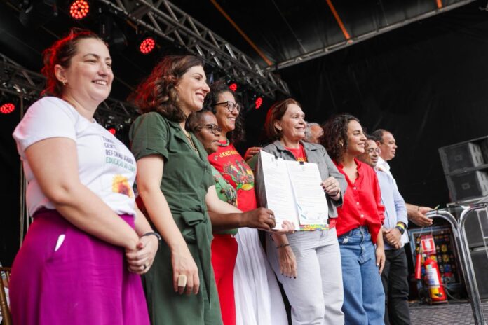 Na manhã deste sábado (20), o Governo Federal realizou a entrega de títulos de posse e liberação de crédito para famílias da Reforma Agrária em Pernambuco. A cerimônia aconteceu durante a 2ª Feira Estadual da Reforma Agrária do MST, no Recife (PE), e reuniu assentados e assentadas de todo o estado.