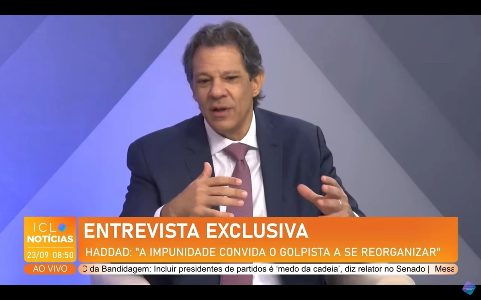 A entrevista também abordou o momento político brasileiro. Haddad concordou com o economista e fundador do ICL, Eduardo Moreira, ao dizer que crises podem ser oportunidades de transformação. “Vivemos uma crise sim, na relação comercial e diplomática com os EUA, mas também um momento auspicioso para fazer mudanças estruturais que nunca tivemos coragem de enfrentar.”