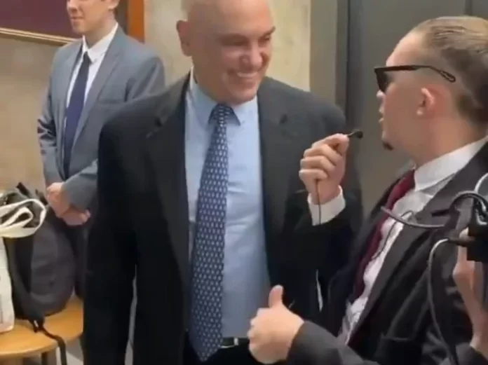 Em tom descontraído, Moraes ironizou as sanções impostas pelo ex-presidente dos Estados Unidos Donald Trump e perguntou ao comediante: “Você fala inglês? Para me defender dos Estados Unidos?”. Mizael respondeu que “saiu do home office”, que o “visto vai ser renovado” e que estava à disposição caso o ministro precisasse de “qualquer coisa”.