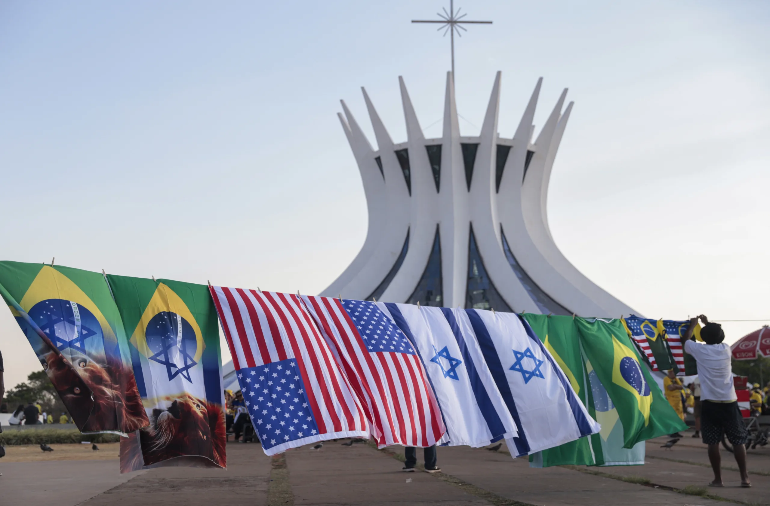 Por onde se olhava, flamejavam bandeiras do Brasil, dos Estados Unidos e de Israel. O Estado sionista também foi referenciado pela ex-primeira dama, Michelle Bolsonaro.