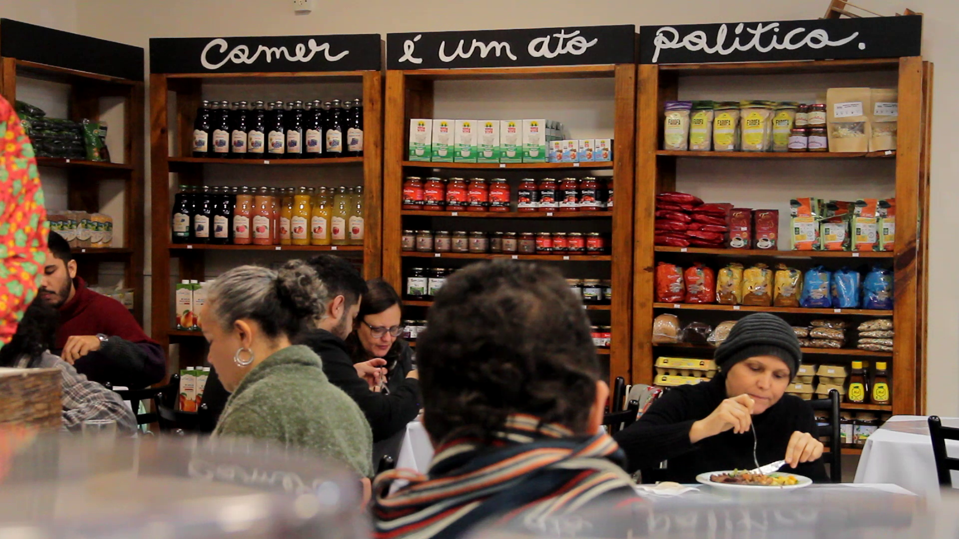 “Foi um casamento perfeito! Uniu aqui o útil ao agradável, porque aqui já é um espaço de resistência, é um ponto de cultura também”, afirma. “E aqui a gente encontra vários camaradas, várias pessoas da luta, e se alimenta de uma comida boa, uma comida bem feita, gostosa, caseira, mas principalmente oriunda da agricultura familiar, agroecológica”, completa.