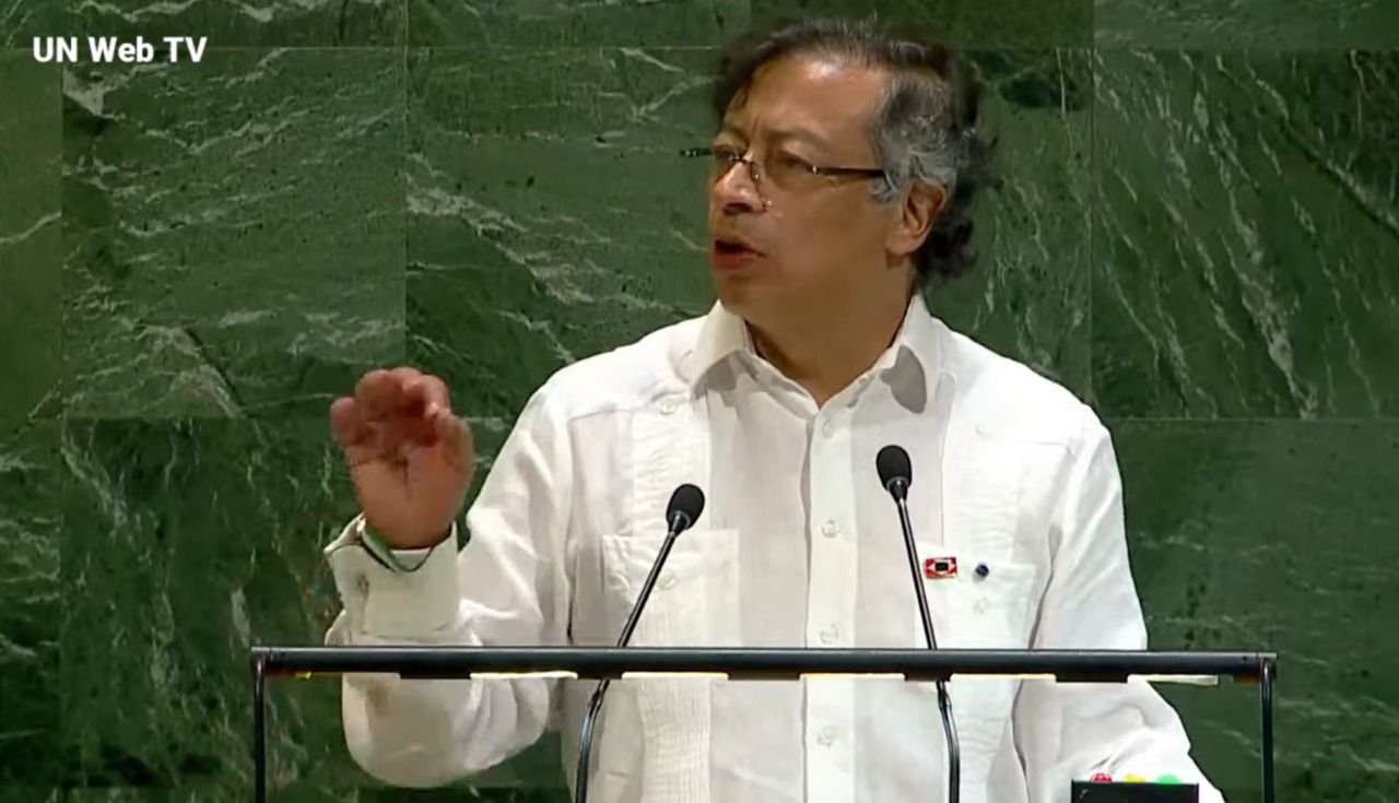 Logo nos primeiros cinco minutos de fala, as câmeras registraram diplomatas estadunidenses abandonando seus assentos. Durante o discurso, o colombiano denunciou o “consumo desmedido de drogas” nos EUA, a decisão de Washington de descertificar seu governo na luta contra o narcotráfico e ainda criticou operações militares dos EUA em águas internacionais. Segundo ele, a migração é usada como “desculpa para que uma sociedade rica, branca e racista se sinta raça superior”, enquanto conduz a humanidade “ao abismo da extinção”.