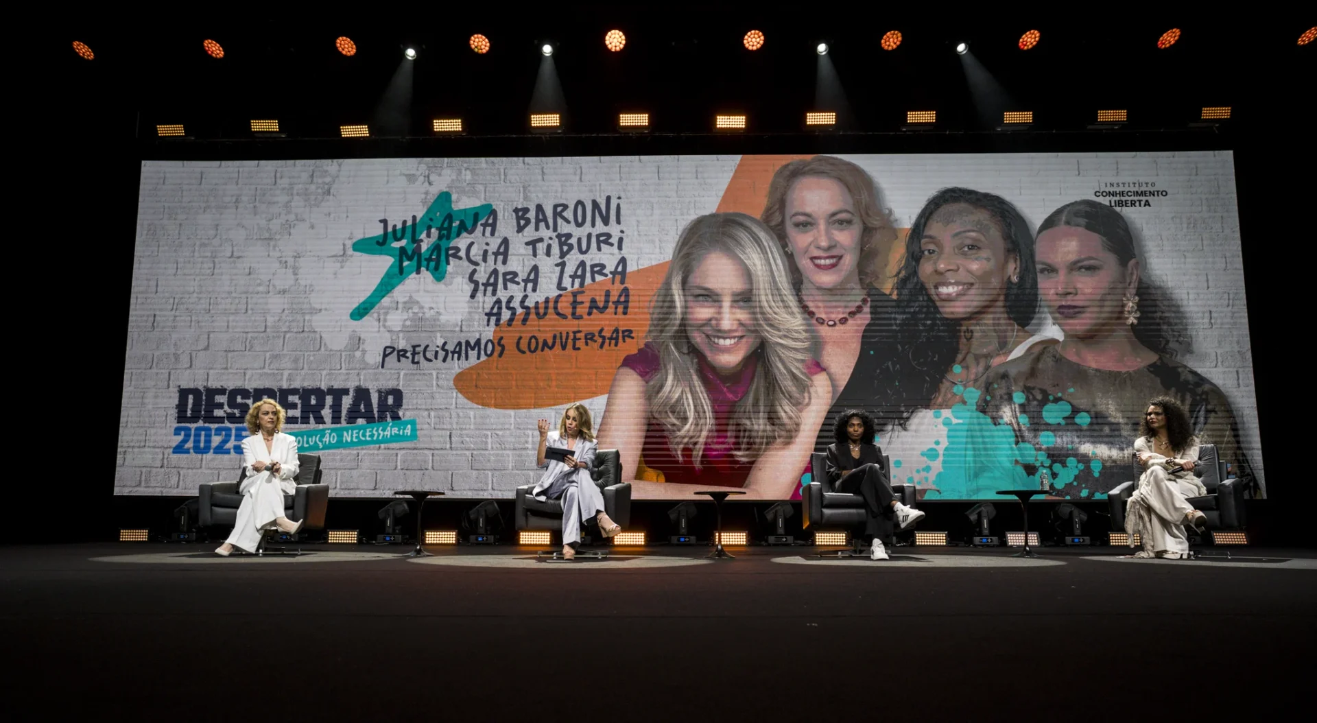 Sara Zara, Juliana Baroni, Márcia Tiburi e Assucena durante o Despertar 2025. Foto: ICL