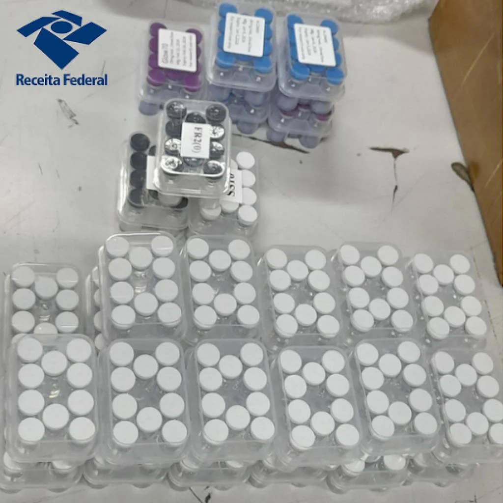 Entre os itens retidos em Viracopos, portanto, estavam peptídeos sem autorização da Anvisa (Agência Nacional de Vigilância Sanitária). Um deles é a retatrutida, medicamento que ainda está em fase de testes clínicos. Além de ilegais, as substâncias representam risco à saúde pela falta de controle sobre origem e composição, alertou a Receita.