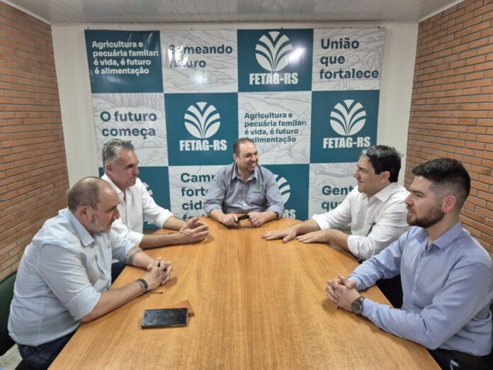 Na Fetag, a comitiva do governo federal conversou com o presidente Carlos Joel da Silva e o secretário executivo Kaliton Prestes – Foto: Bruna Karpinski