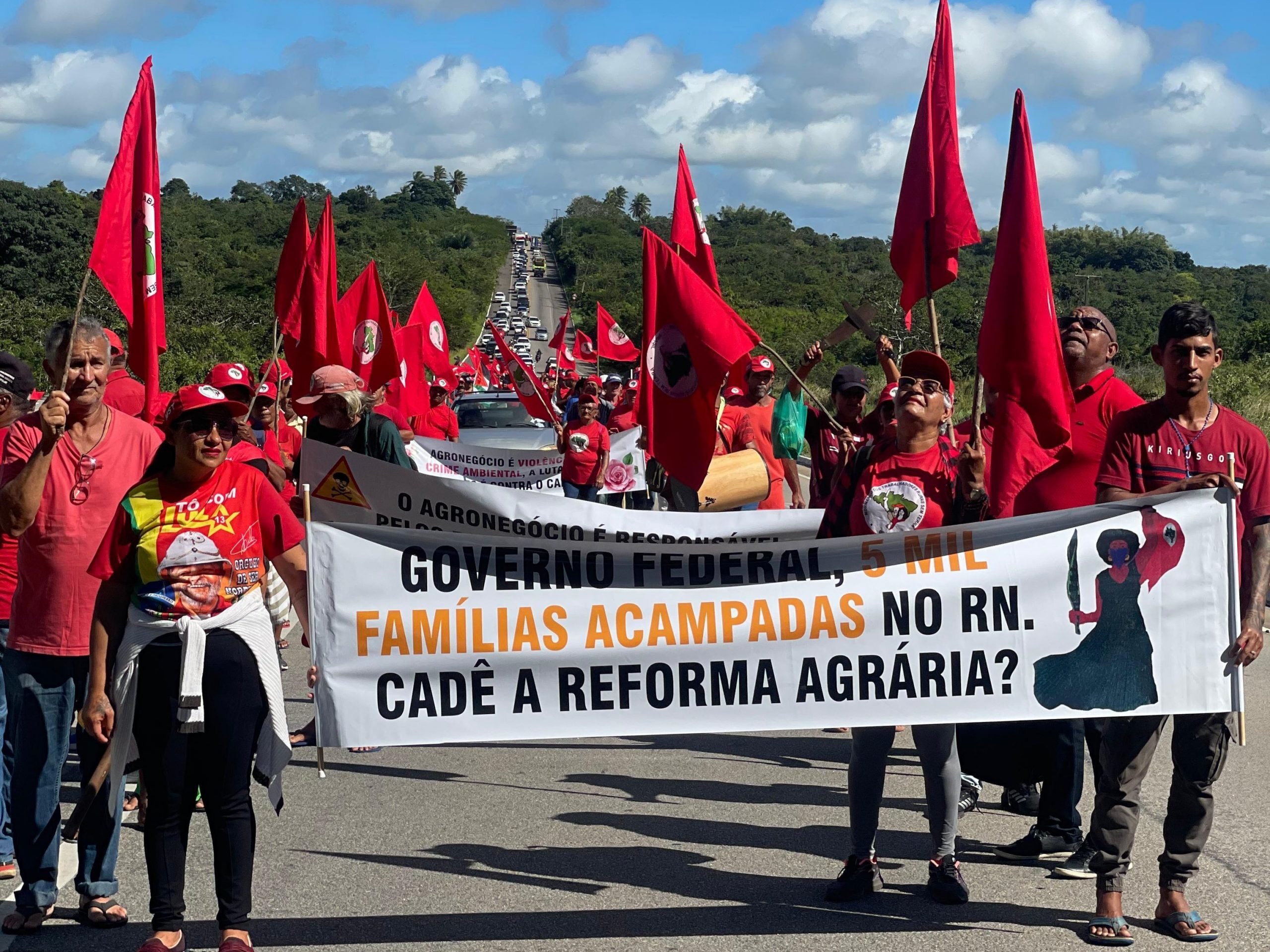 No Rio Grande do Norte, militantes do MST marcham pela BR-406 rumo a Natal. A caminhada denuncia o abandono das políticas de Reforma Agrária no estado e pressiona o governo estadual a garantir medidas concretas como a desapropriação de terras – em especial do complexo açucareiro em Ceará-Mirim – e a regularização das famílias já assentadas pelo Incra. Também estão na pauta o crédito para produção e a reestruturação do perímetro irrigado no município de Apodi.