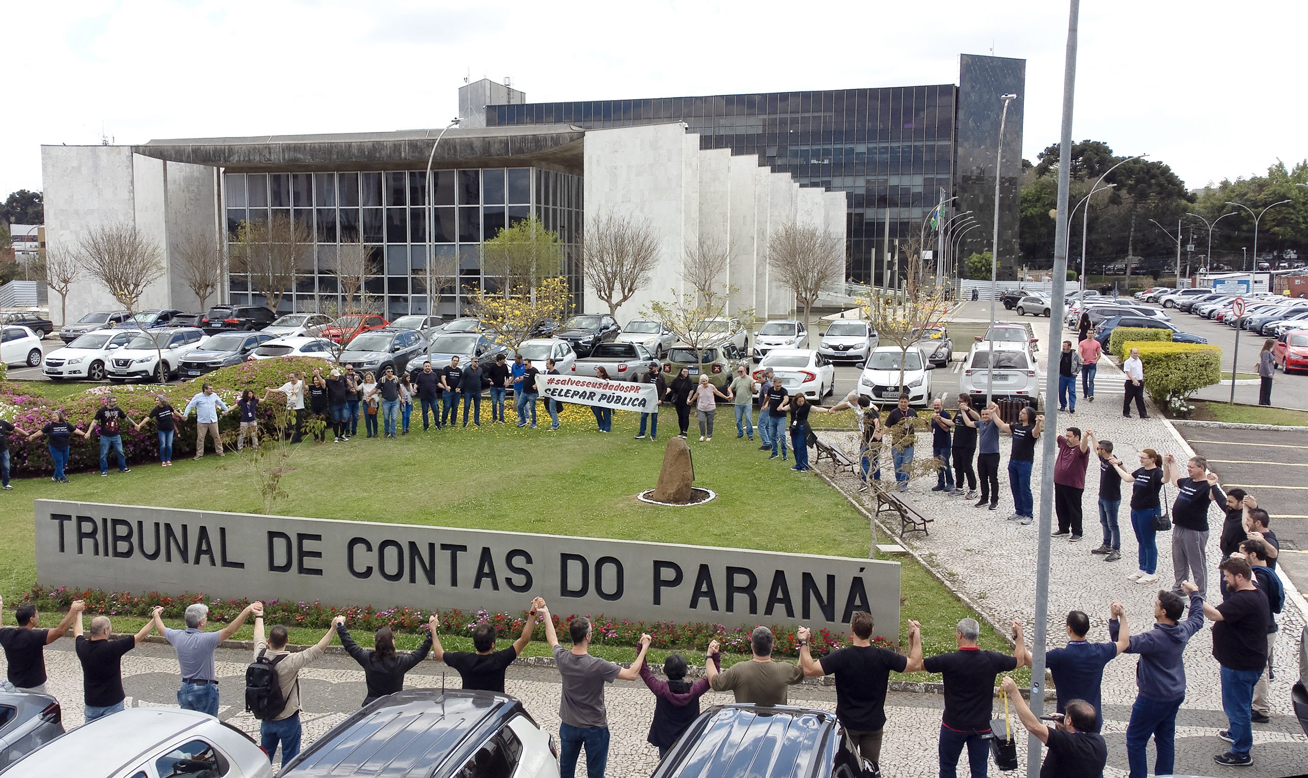 Embora o Governo do Paraná negue, o processo de venda da Celepar (Empresa de Tecnologia da Informação e Comunicação do Paraná) segue suspenso pelo Tribunal de Contas do Estado (TCE-PR). A manutenção da interrupção ocorreu após o conselheiro Fernando Guimarães pedir vistas do processo no último dia 17. A discussão pode ser retomada na semana que vem. No entanto, o pedido de vistas pode durar quatro semanas. Enquanto isso, realizaram um abraço simbólico no prédio do Tribunal como forma de agradecer a paralisação da privatização da empresa que concentra dados sigilosos dos paranaenses.