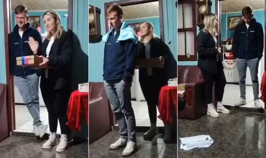 O episódio aconteceu em Quinze de Novembro (RS), município com cerca de 3,9 mil habitantes, no último dia 9, na casa dos pais de Rafael. Durante um evento com clima de celebração e expectativa entre os familiares, Natália abriu uma caixa decorada com fitas rosa e azul. Em vez do anúncio de sexo do bebê, revelou que descobriu múltiplas traições do companheiro. Ela apresentou trocas de mensagens e fotos como prova da infidelidade no vídeo.